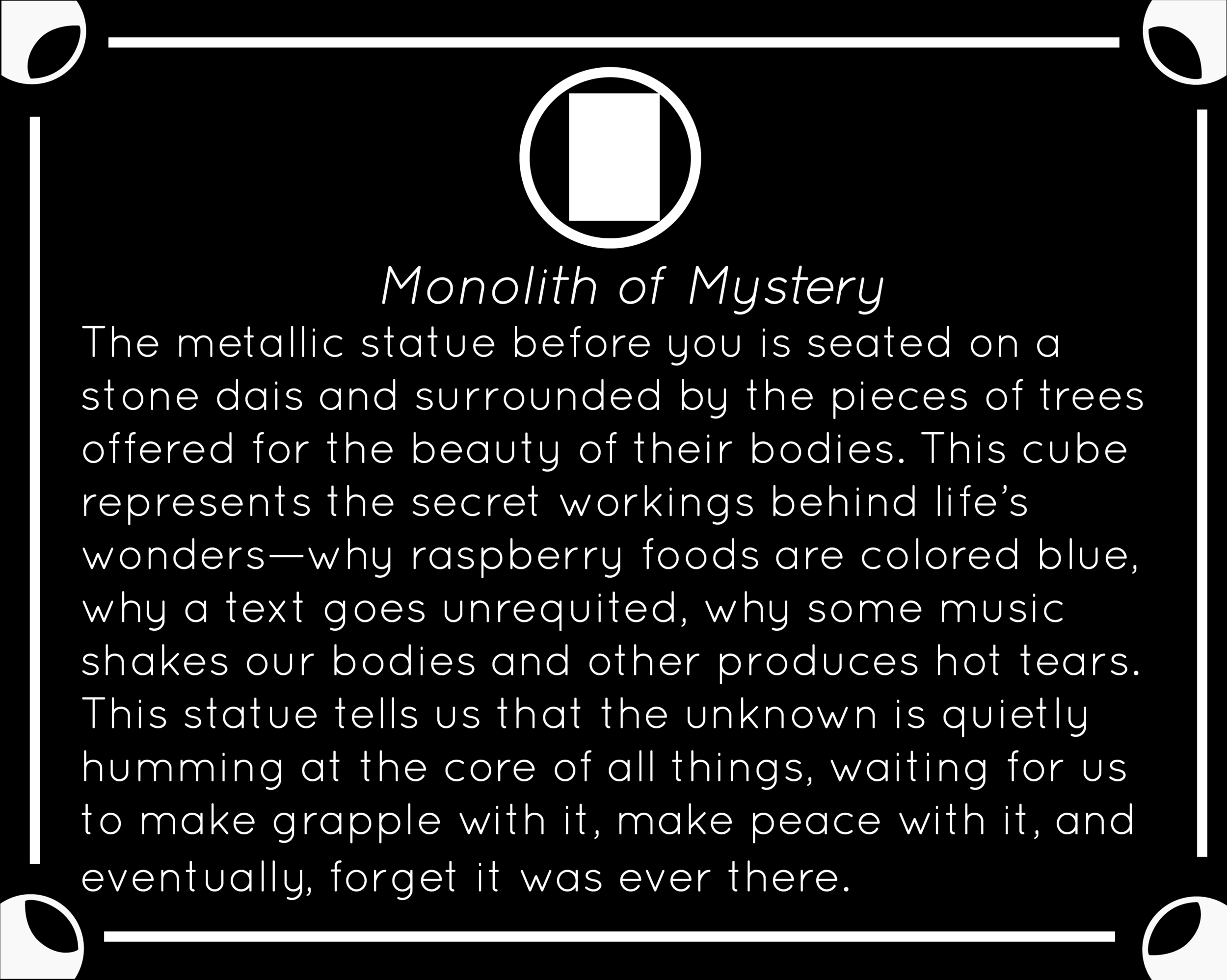 Interpreters is a series of plaques that honor the sacred sites all around us that we all too often fail to recognize. Go to any geological or anthropological dig site and you’ll see plaques abounding at every corner extolling the crumbled site of an 1000 year old trading post or the faded rectangle experts now believe to be the site of an ancient Greek public bathroom, but where are the plaques for the ephemera of our contemporary lives? Interpreters seeks to begin righting this oversight, each one extolling the site not just for what it is, but for what it symbolizes.